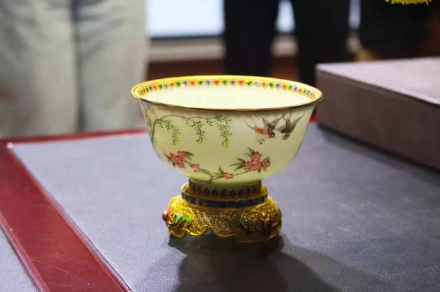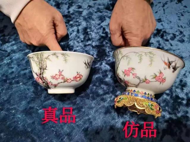 蔡暄民老师现场讲解杏林春燕图碗真品与仿品的区别。